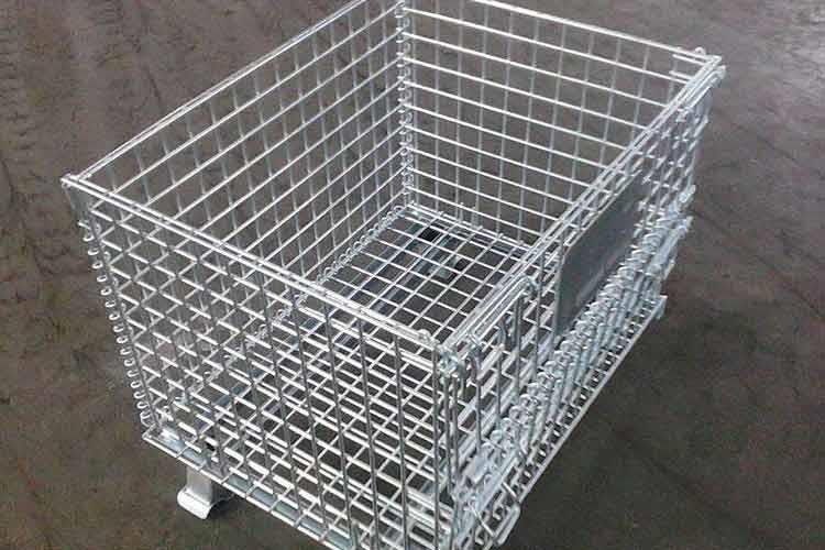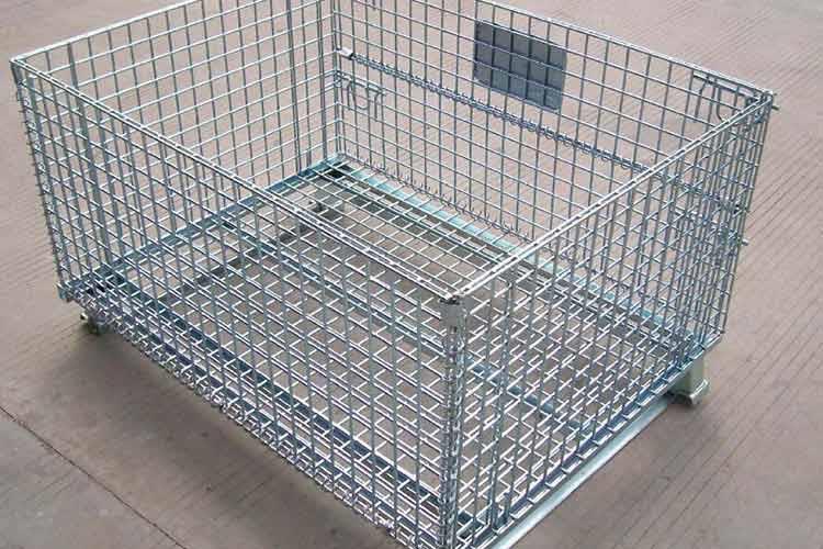 折疊式倉(cāng)庫(kù)籠的主要原材料是高線拉成的鋼絲,一般絲徑是5mm,6mm,6.4mm。網(wǎng)片焊接的網(wǎng)目間距一般為50×100,100×100,50×50。折疊式倉(cāng)庫(kù)籠采用U型鋼焊接而成,U型鋼是冷軋帶鋼軋機(jī)軋制而成,底部四角采用沖壓件一次沖制而成。